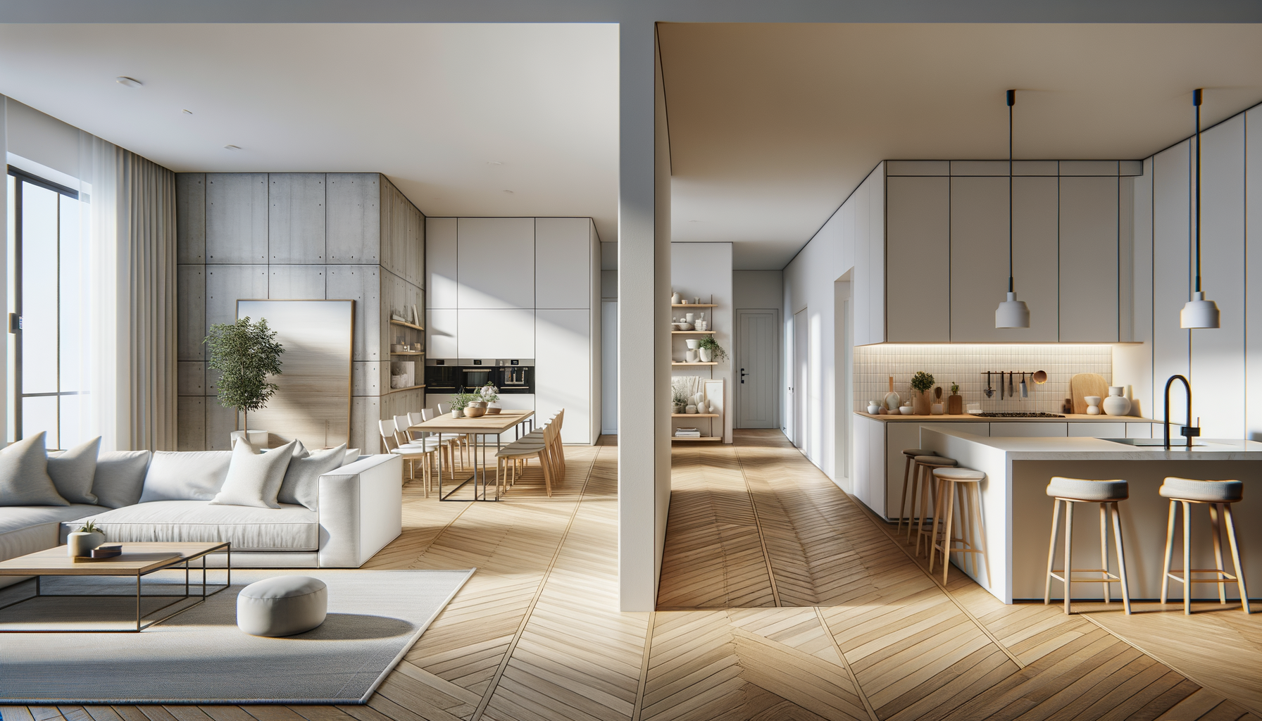 - Use consistent flooring to unify separate rooms.