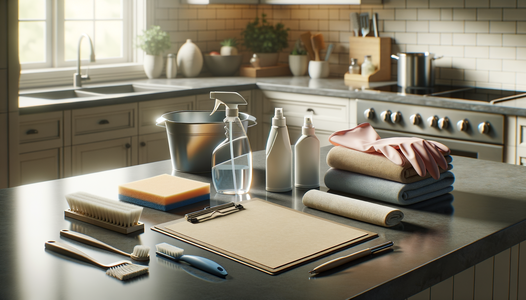 - Countertops & Cabinets: Use a gentle degreaser; wipe down all surfaces and hardware.